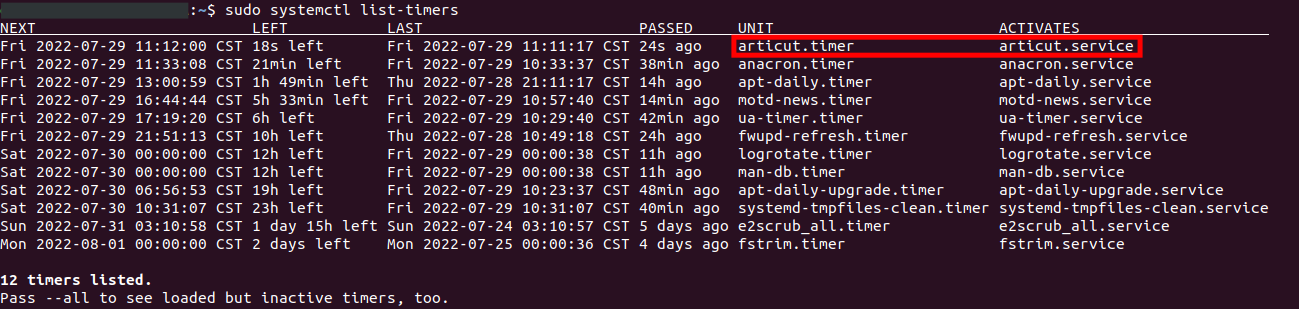 sudo systemctl list-timers # Check if articut_en.timer is in the schedule