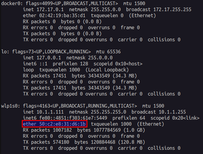- Name of the physical network interface (must not be lo or Docker's virtual network interface)
